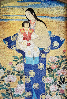 Adentro hay una serie de cuadros y figuras modernas que representan a cómo ven a María los distintos países del mundo. Son expresiones de arte religioso muy interesantes.